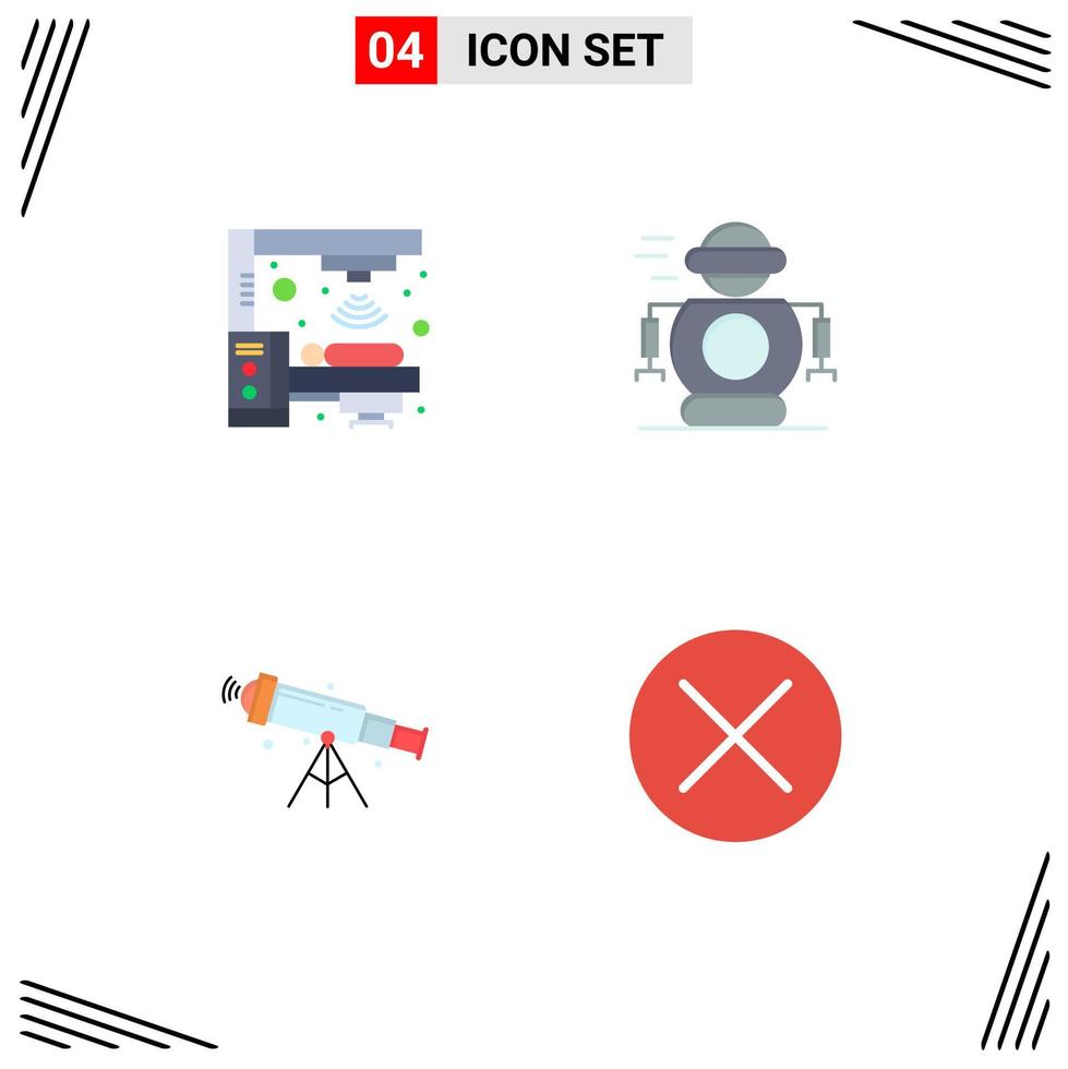4 Universal Flat Icons Set for Web and Mobile Applications machine astronomy scanner robotic view Editable Vector Design Elements