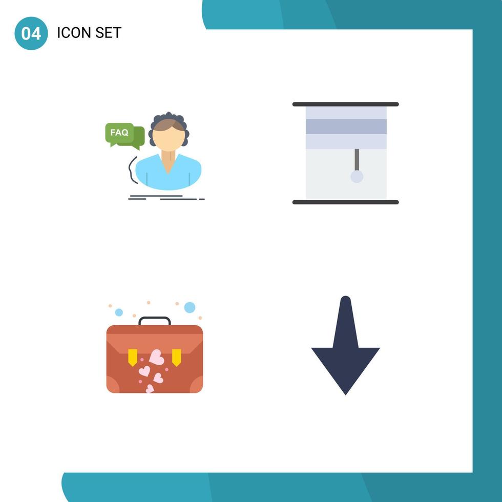 Group of 4 Modern Flat Icons Set for faq rolled consultation design brief Editable Vector Design Elements