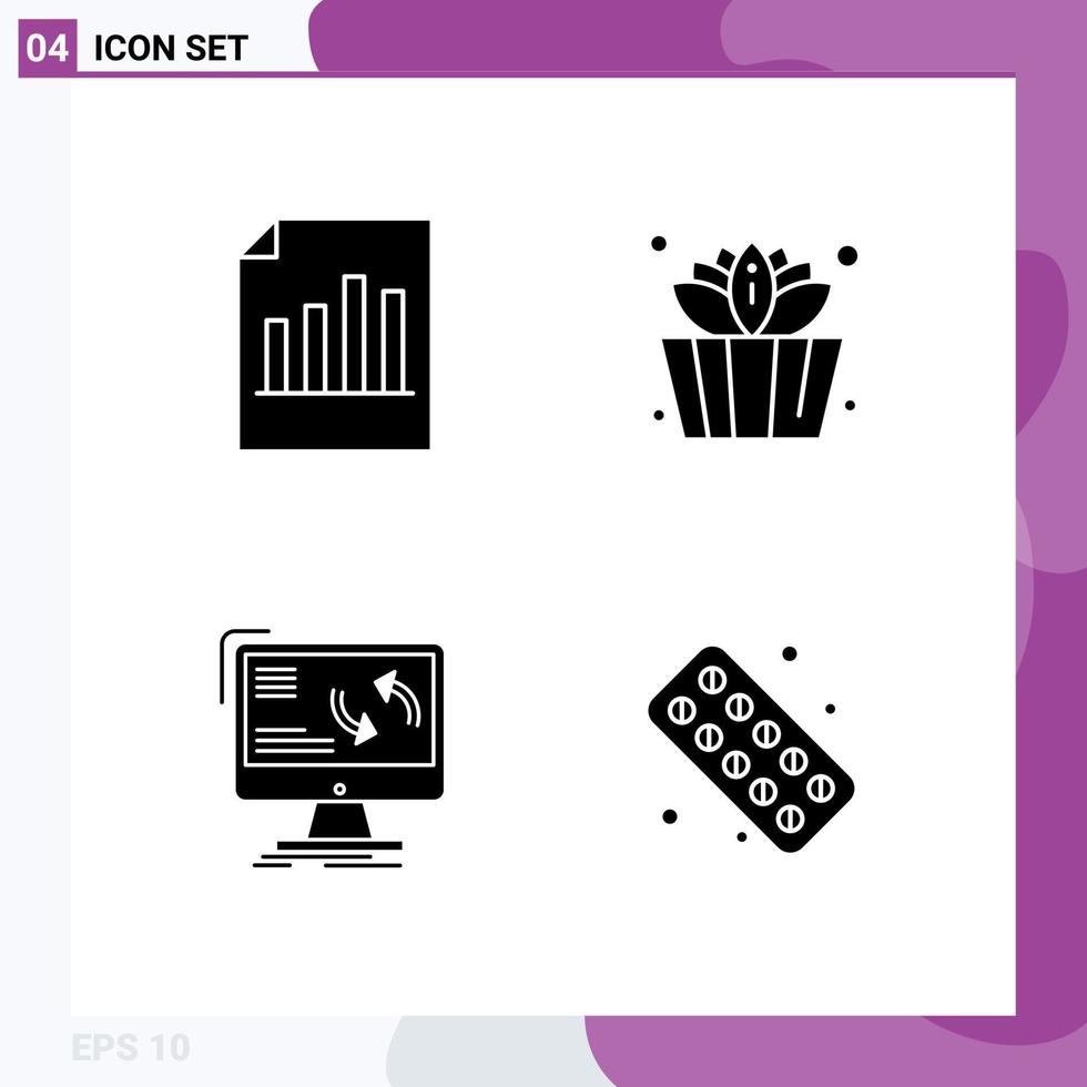 4 User Interface Solid Glyph Pack of modern Signs and Symbols of document sync report sauna data Editable Vector Design Elements