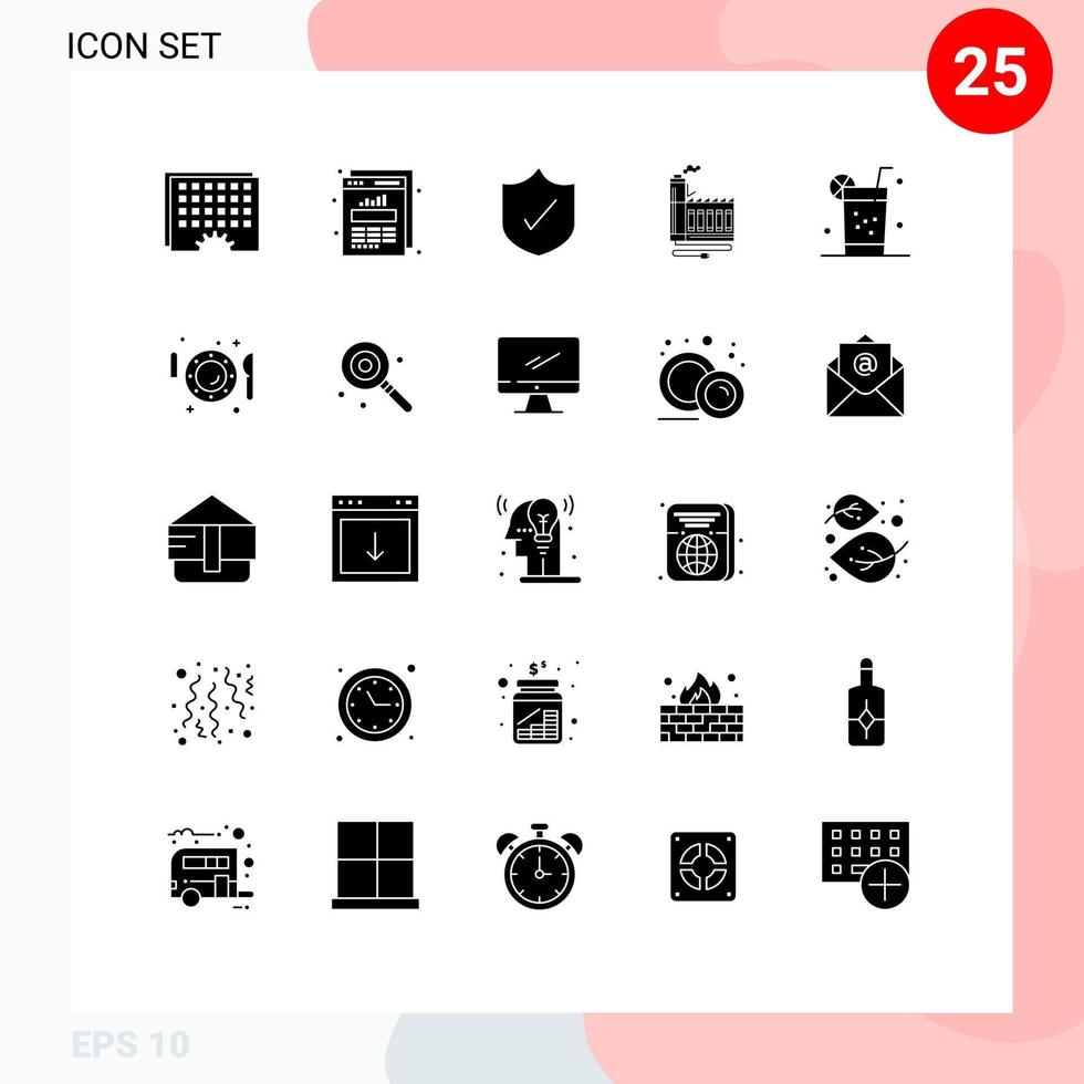Set of 25 Modern UI Icons Symbols Signs for fruit factory web stats energy consumption Editable Vector Design Elements