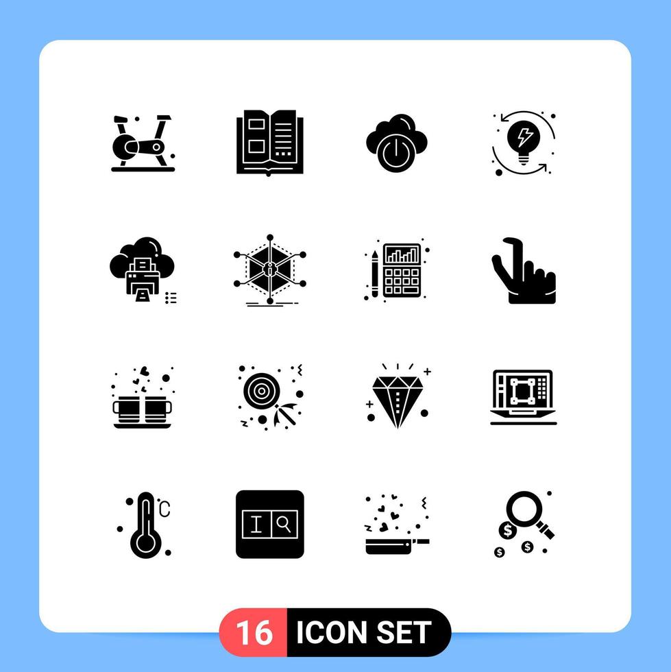 Modern Set of 16 Solid Glyphs Pictograph of data system cloud progression development Editable Vector Design Elements