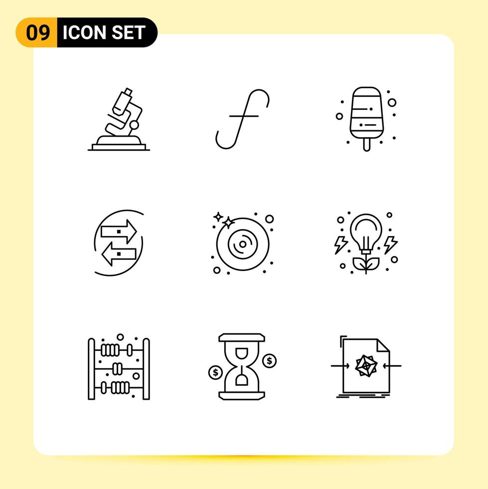 9 Universal Outlines Set for Web and Mobile Applications disk money cream exchang chart Editable Vector Design Elements
