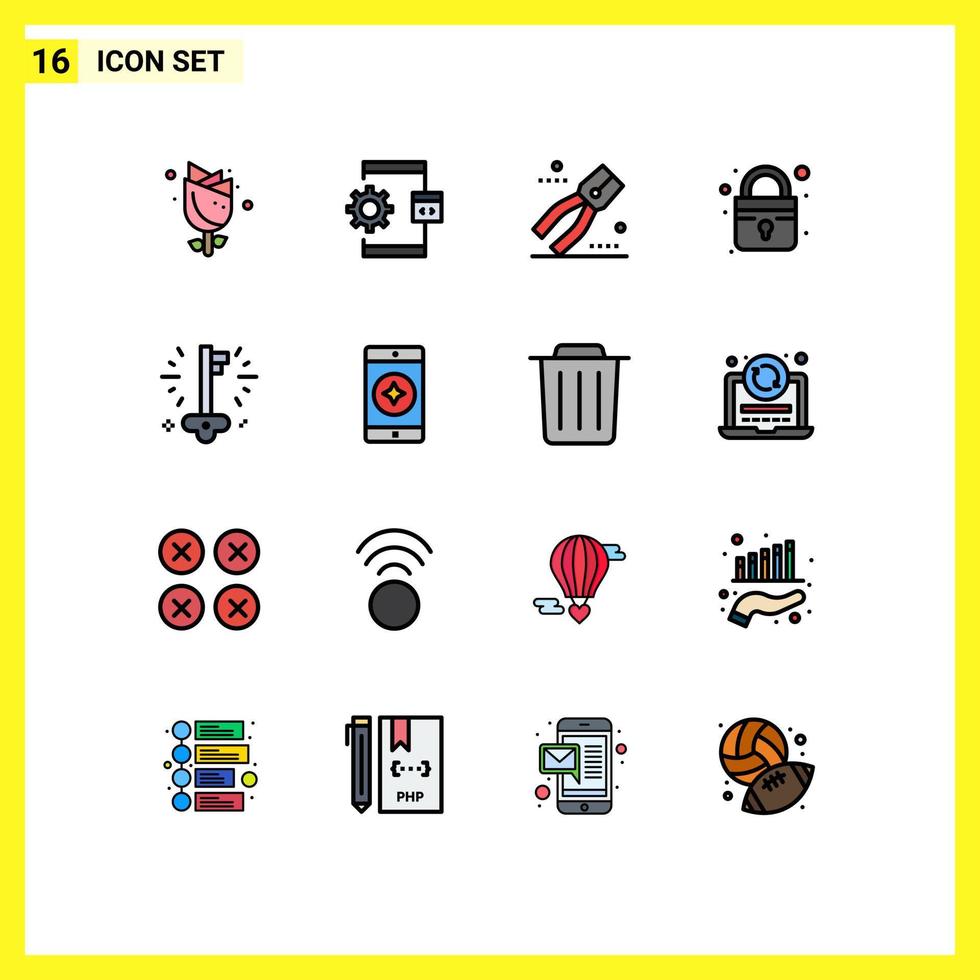 Set of 16 Modern UI Icons Symbols Signs for key secure process lock tool Editable Creative Vector Design Elements