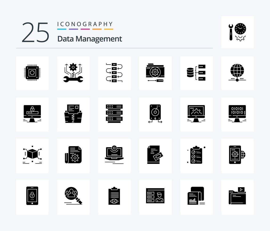 Data Management 25 Solid Glyph icon pack including options . configuration . setting . note vector