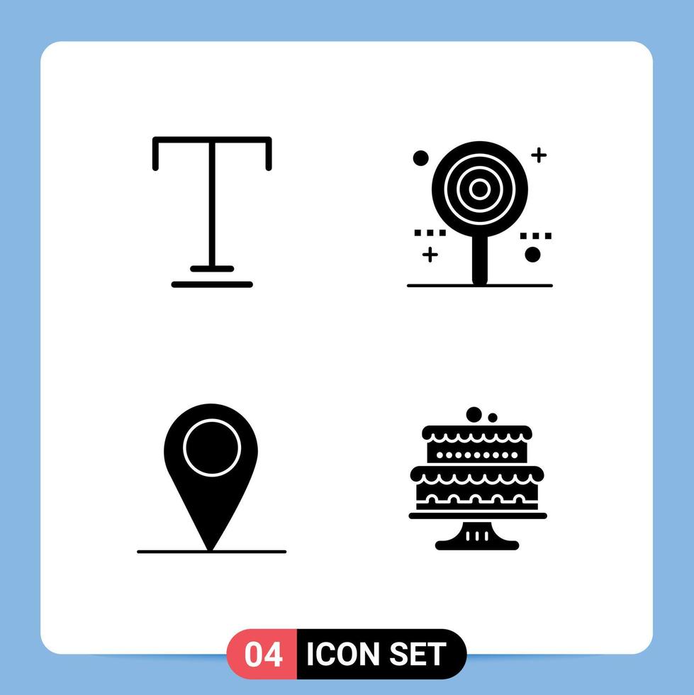Pictogram Set of 4 Simple Solid Glyphs of font location candy lollipop baked Editable Vector Design Elements