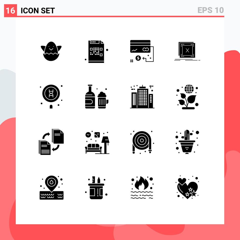 Pack of 16 Modern Solid Glyphs Signs and Symbols for Web Print Media such as biology problem card message error Editable Vector Design Elements