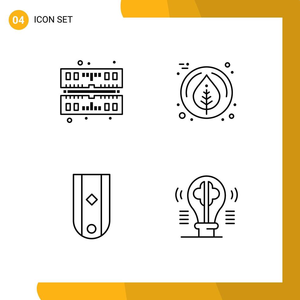 4 User Interface Line Pack of modern Signs and Symbols of computer one leaf diamond brain Editable Vector Design Elements