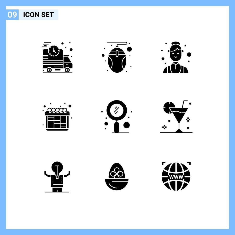 Set of 9 Commercial Solid Glyphs pack for search quest assistant workflow iteration Editable Vector Design Elements