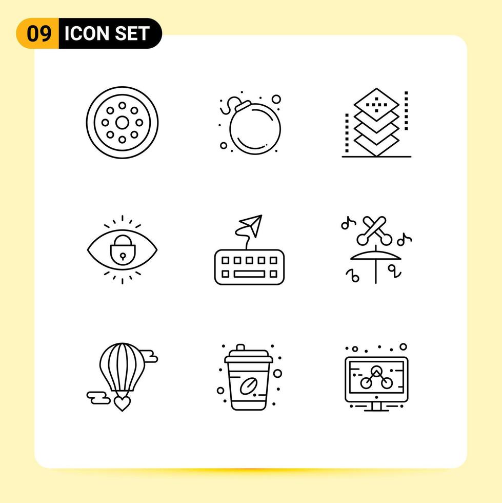Group of 9 Outlines Signs and Symbols for attach security coding internet programing Editable Vector Design Elements Free Vector