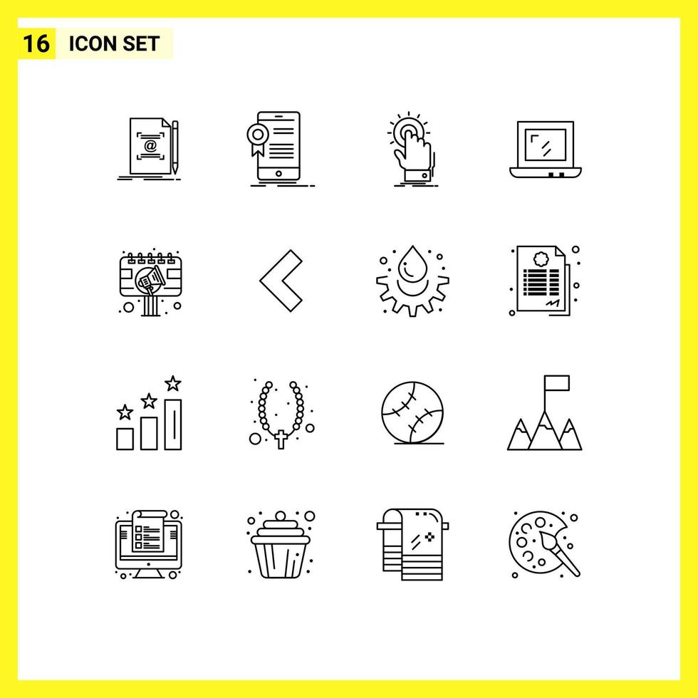 Universal Icon Symbols Group of 16 Modern Outlines of laptop web application start hand Editable Vector Design Elements