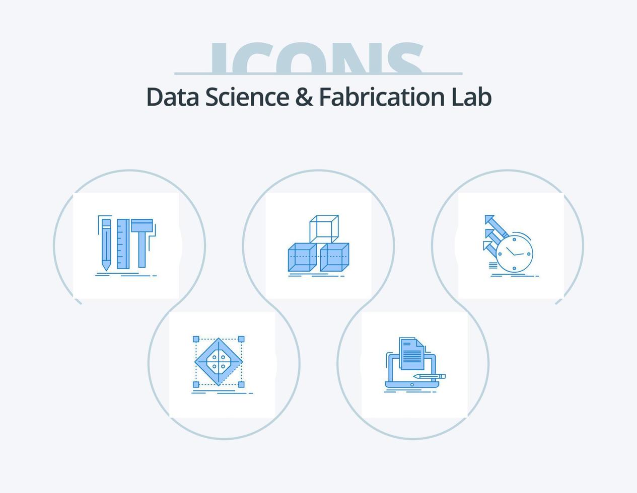 Data Science And Fabrication Lab Blue Icon Pack 5 Icon Design. stackd. arrange. list. pencil. digital Free Vector