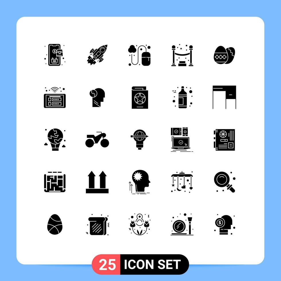 Editable Vector Line Pack of 25 Simple Solid Glyphs of easter egg night mission queue mouse Editable Vector Design Elements