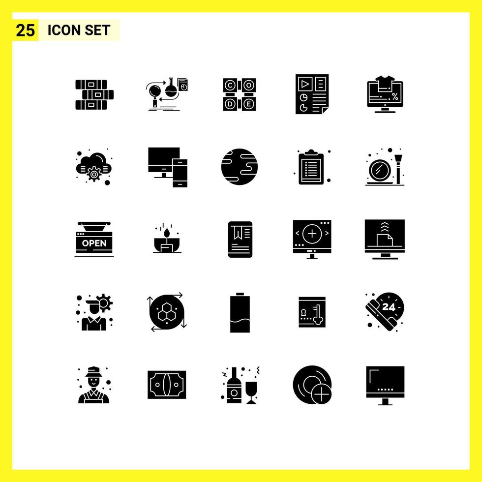 Pictogram Set of 25 Simple Solid Glyphs of monitor report code page data Editable Vector Design Elements