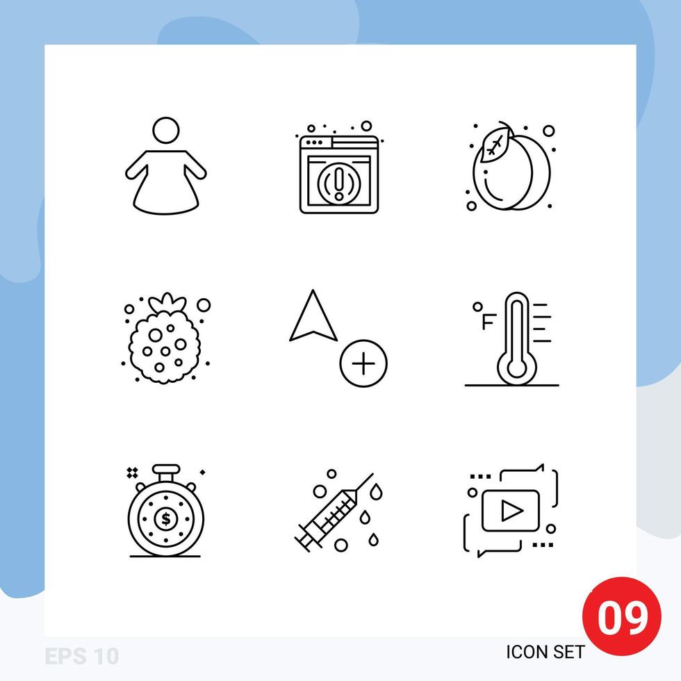 Mobile Interface Outline Set of 9 Pictograms of light cursor fruit copy raspberry Editable Vector Design Elements Free Vector
