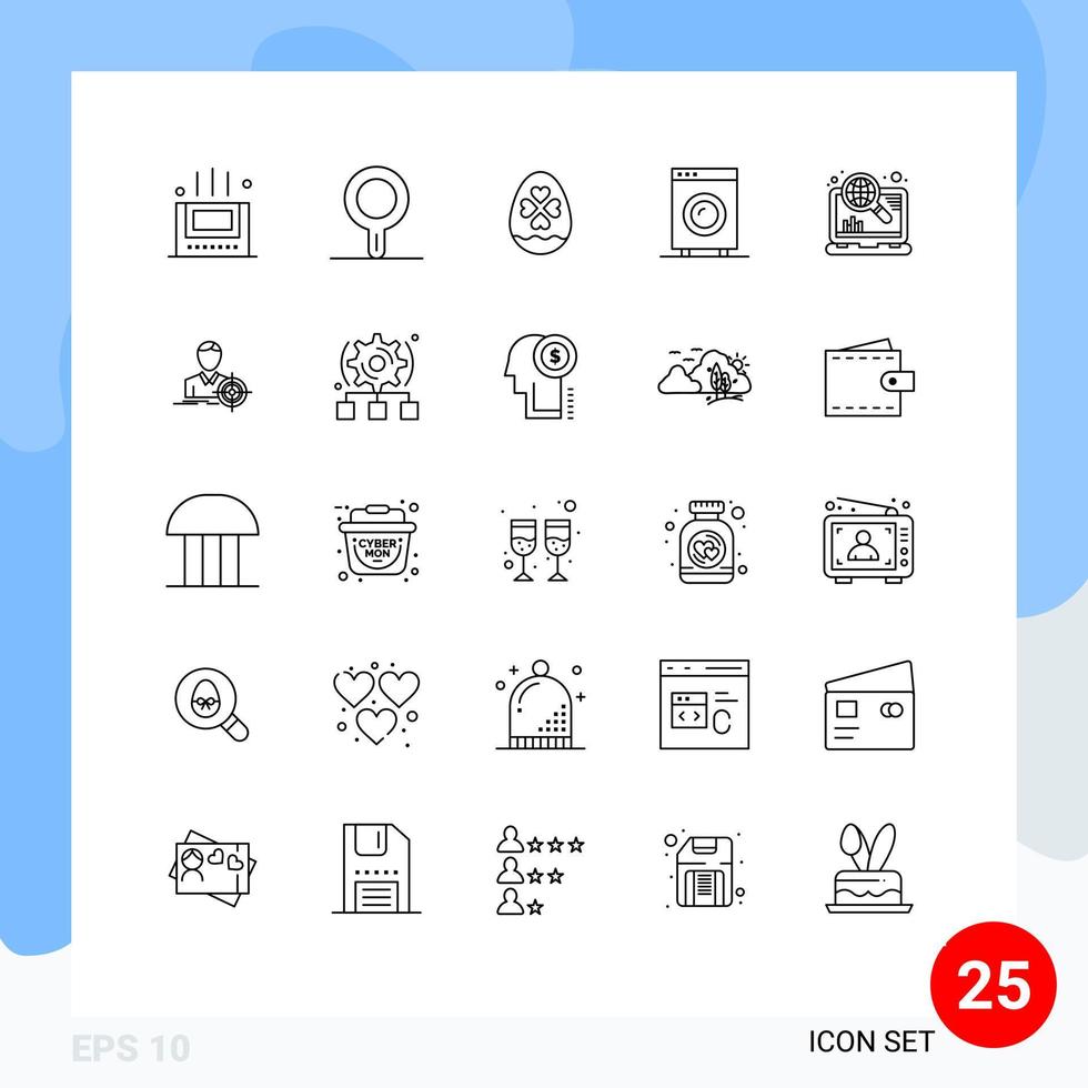 Group of 25 Modern Lines Set for optimization internet heart hardware electronic Editable Vector Design Elements