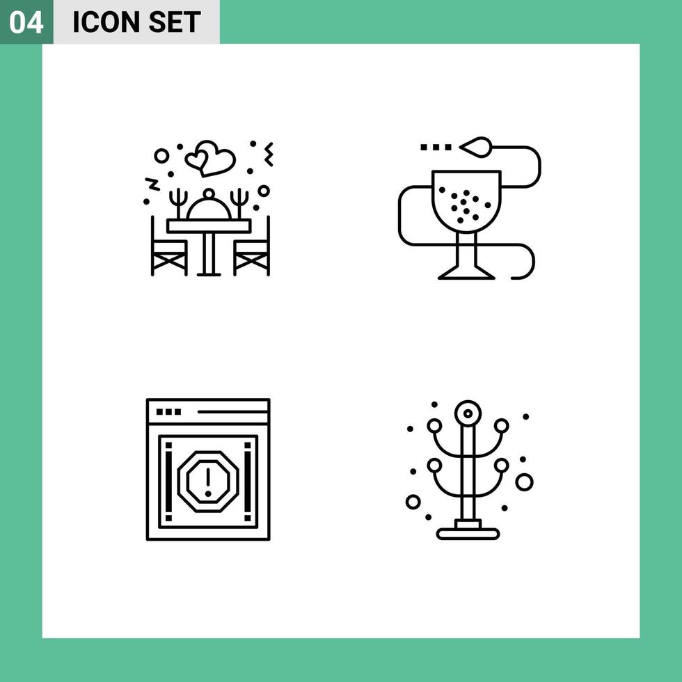 4 User Interface Line Pack of modern Signs and Symbols of dinner alert table health message Editable Vector Design Elements Free Vector