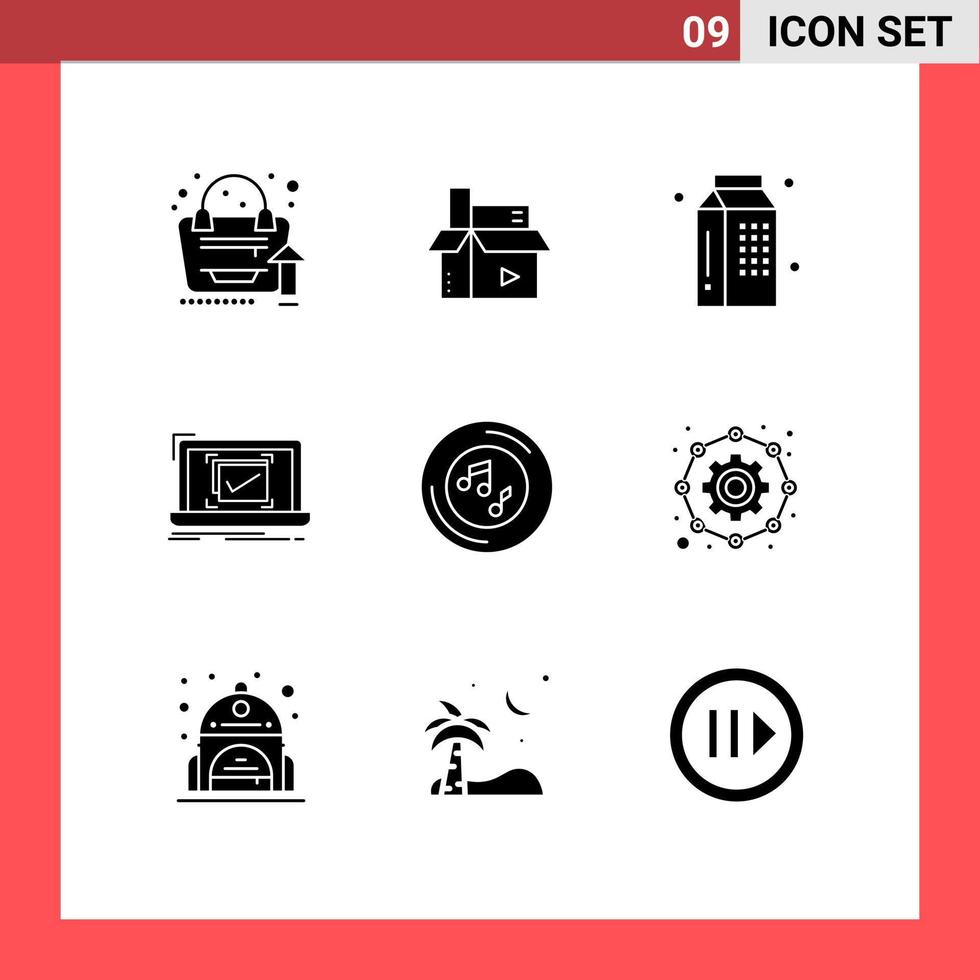 Mobile Interface Solid Glyph Set of 9 Pictograms of good monitoring publishing system meal Editable Vector Design Elements