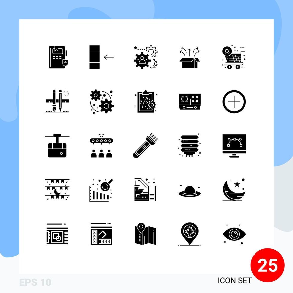 Editable Vector Line Pack of 25 Simple Solid Glyphs of ecommerce product production open box box Editable Vector Design Elements