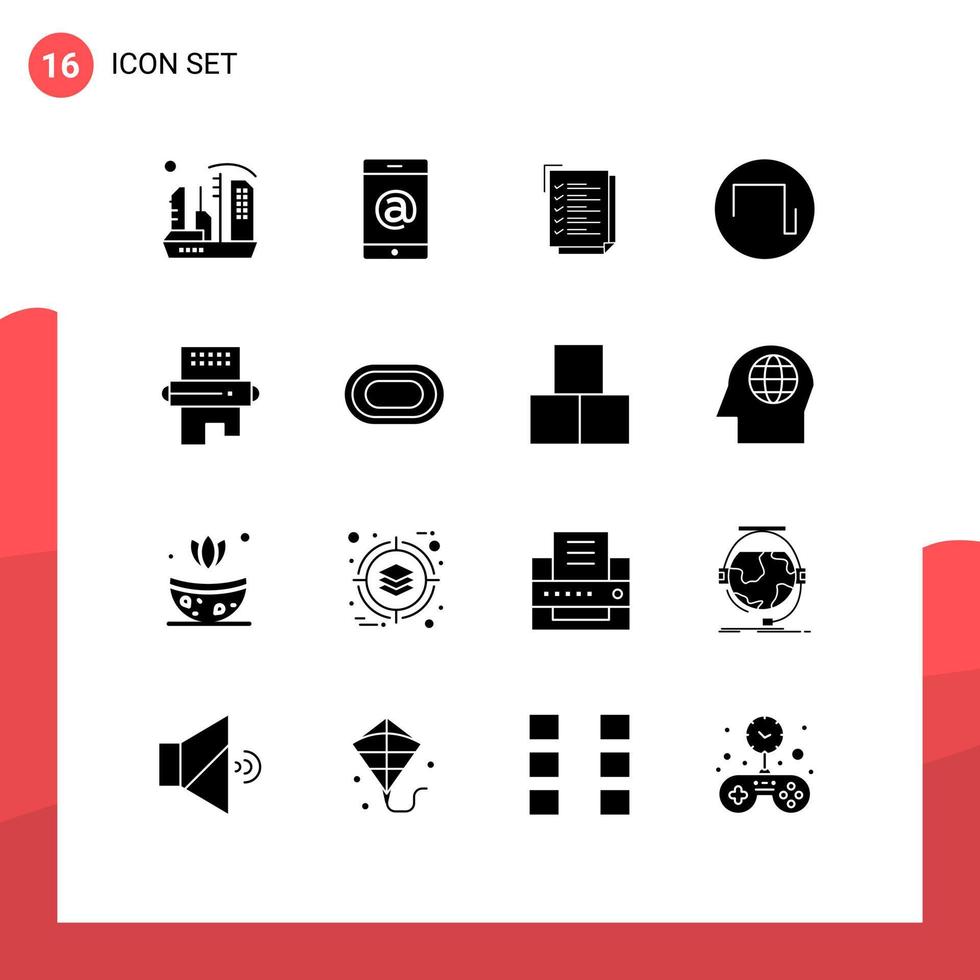 Mobile Interface Solid Glyph Set of 16 Pictograms of food cooking check list wave sound Editable Vector Design Elements Free Vector