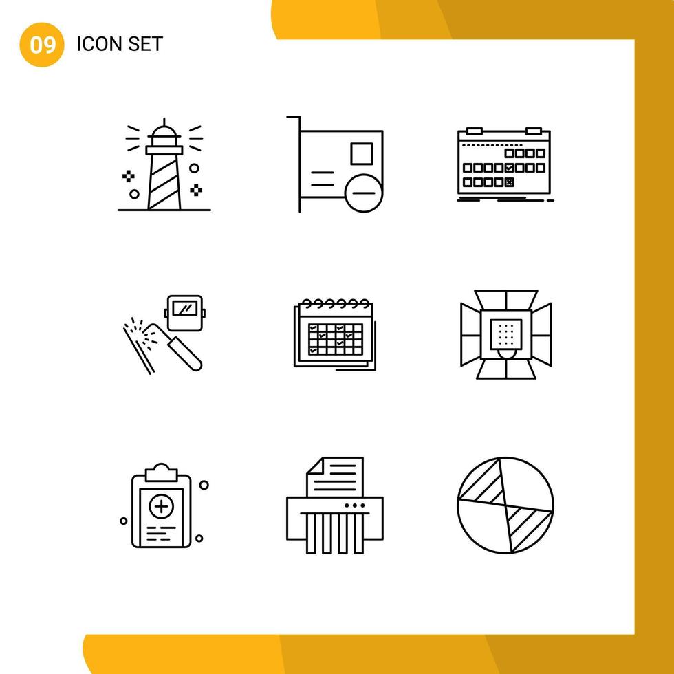 Pack of 9 Modern Outlines Signs and Symbols for Web Print Media such as mask welding hardware schedule event Editable Vector Design Elements