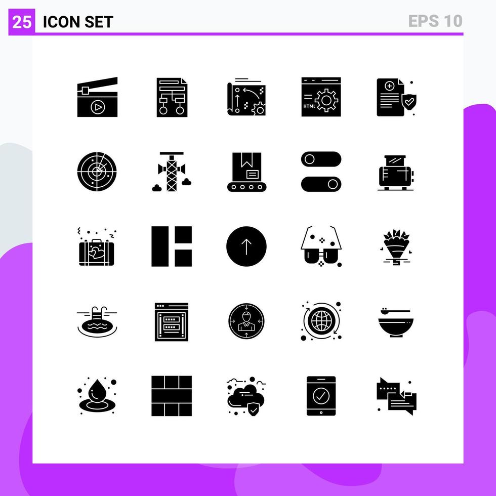 Modern Set of 25 Solid Glyphs and symbols such as programming develop app coding api Editable Vector Design Elements