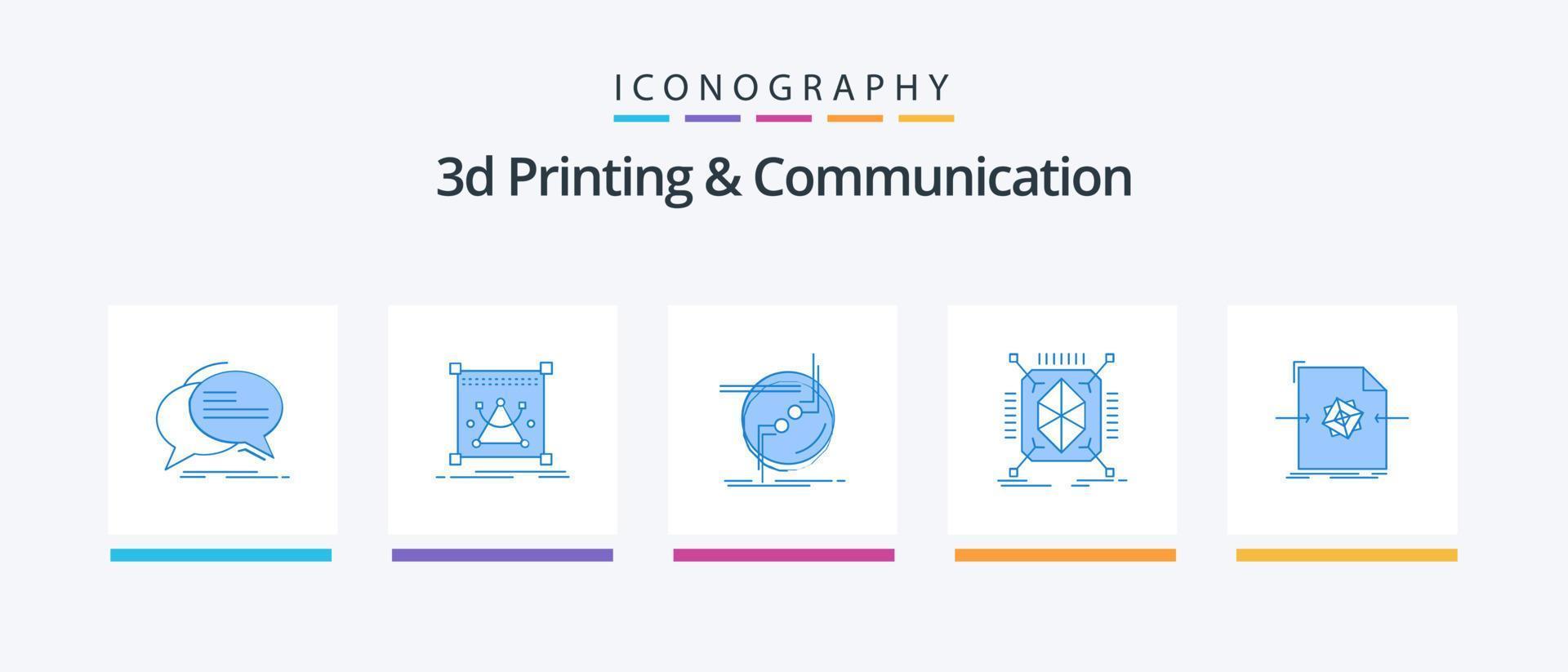 3d Printing And Communication Blue 5 Icon Pack Including rapid. object. object. wire. connection. Creative Icons Design vector