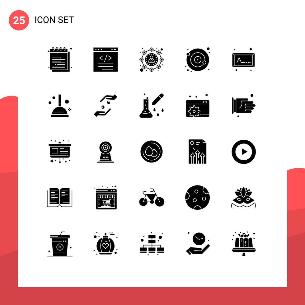 Editable Vector Line Pack of 25 Simple Solid Glyphs of satellite moon html orbit marketing Editable Vector Design Elements