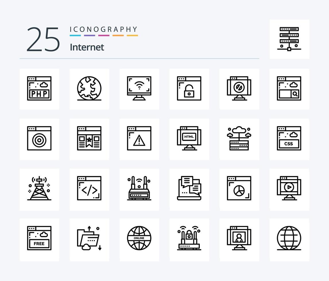 Internet 25 Line icon pack including delete. secure. multimedia. privacy. browser Free Vector