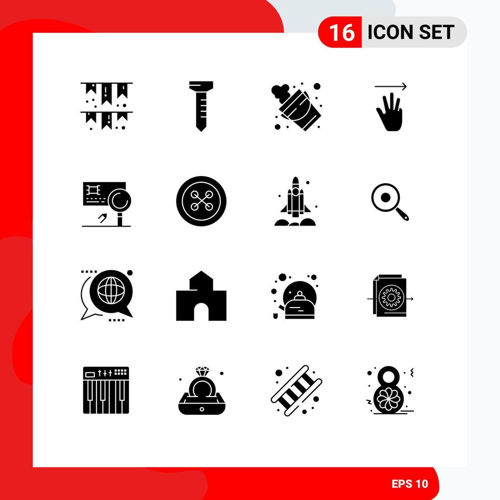 Pictogram Set of 16 Simple Solid Glyphs of detection banking firefighter analysis up Editable Vector Design Elements Free Vector