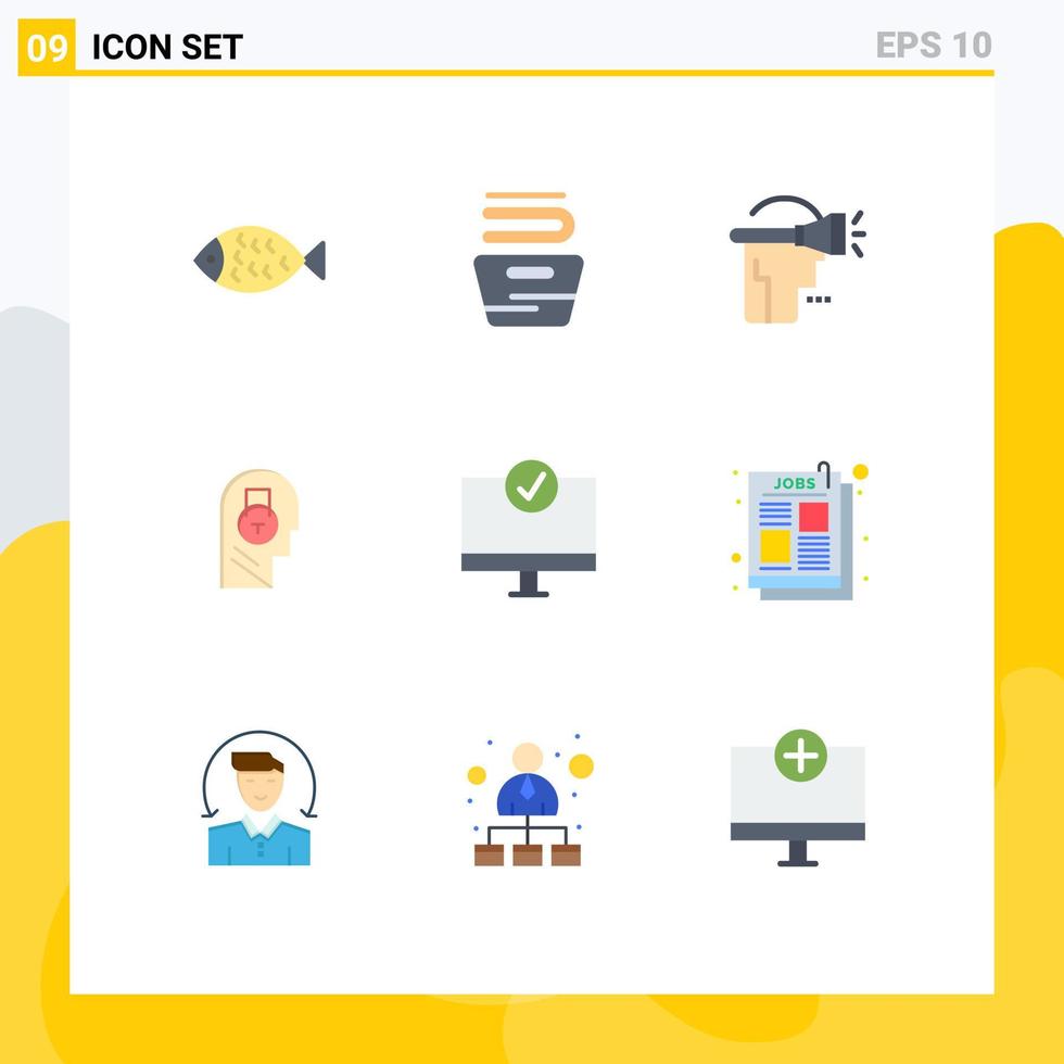 Set of 9 Modern UI Icons Symbols Signs for computers data head message lock Editable Vector Design Elements