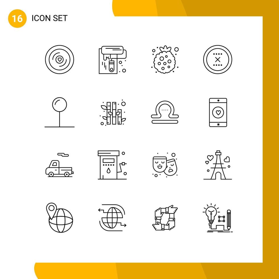Group of 16 Outlines Signs and Symbols for coordinate delete berry close cancel Editable Vector Design Elements Free Vector