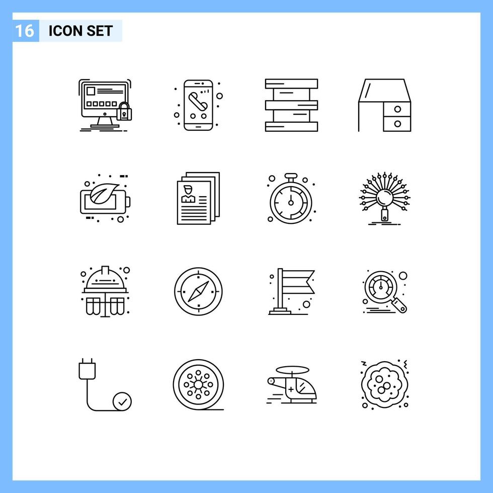 16 Universal Outlines Set for Web and Mobile Applications office desk desk drawer phone bureau chemistry Editable Vector Design Elements