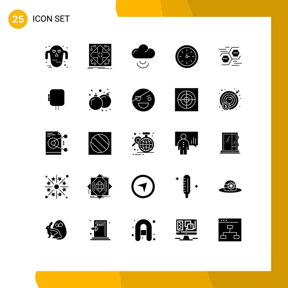 Modern Set of 25 Solid Glyphs Pictograph of network tool grid speedometer device Editable Vector Design Elements