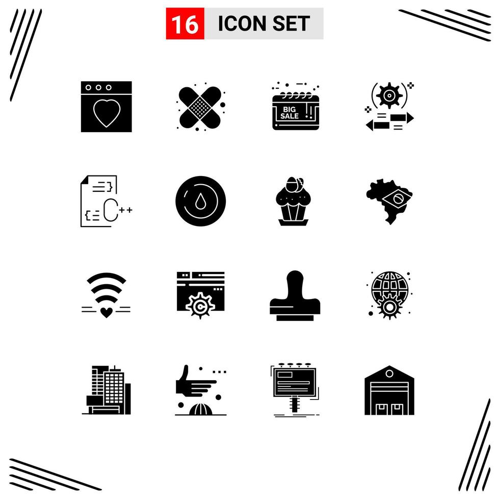 Mobile Interface Solid Glyph Set of 16 Pictograms of coding right grand sale left gear Editable Vector Design Elements