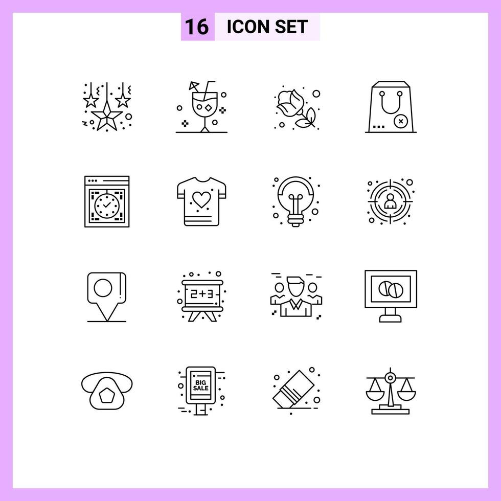 Mobile Interface Outline Set of 16 Pictograms of computer e flower commerce buy Editable Vector Design Elements