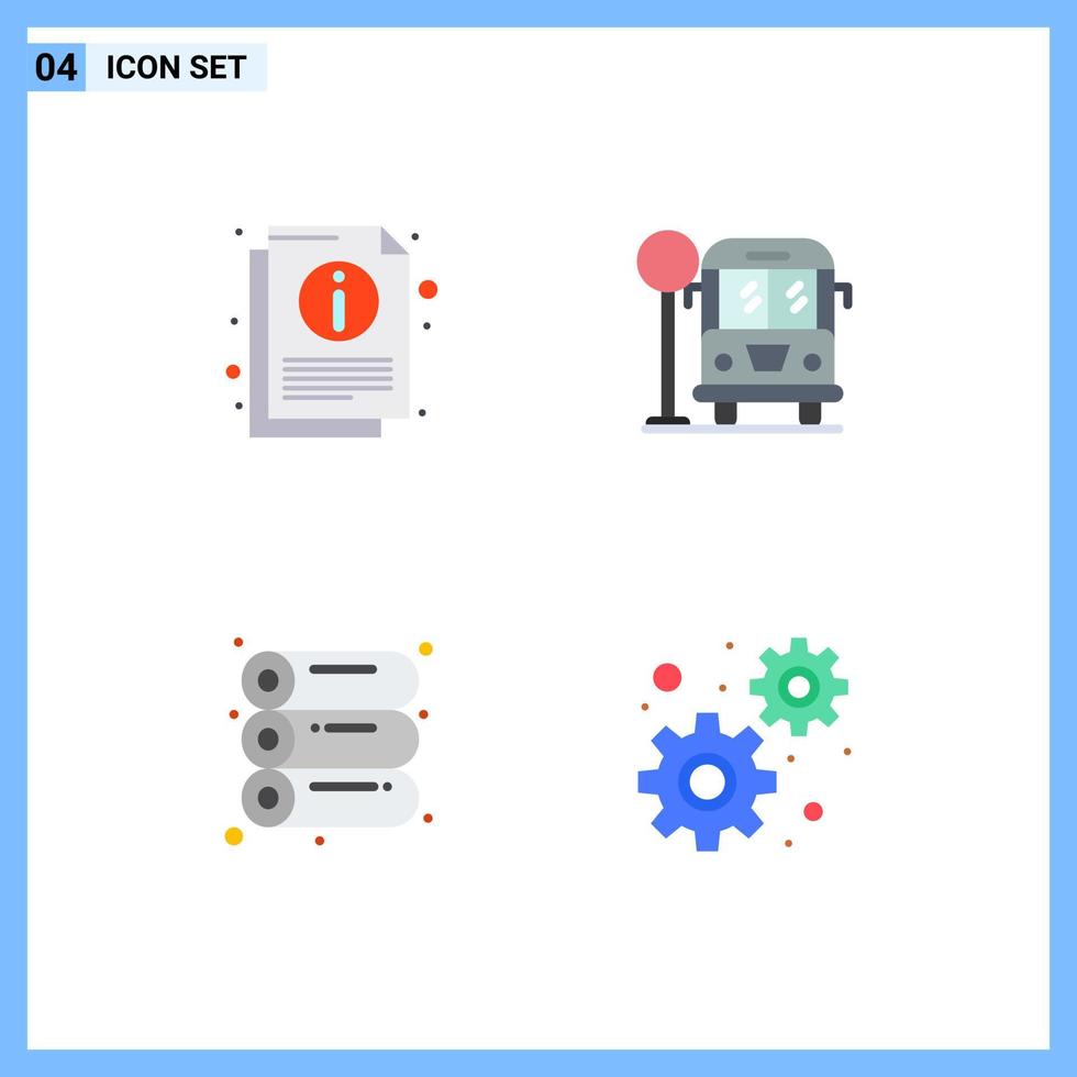 4 Universal Flat Icon Signs Symbols of info printing document bus stop gears Editable Vector Design Elements Free Vector
