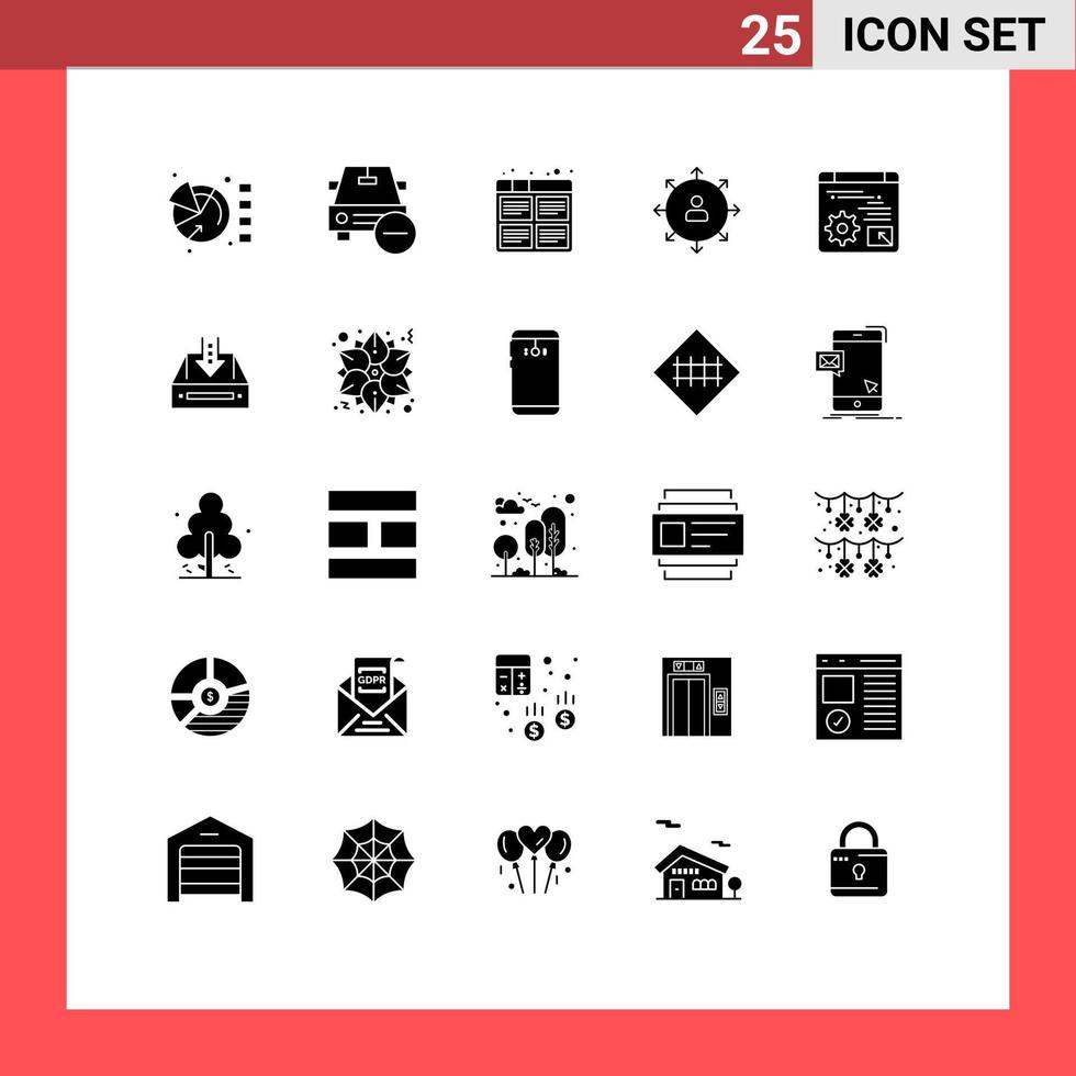 25 Universal Solid Glyphs Set for Web and Mobile Applications employee arrows vehicles direction process Editable Vector Design Elements