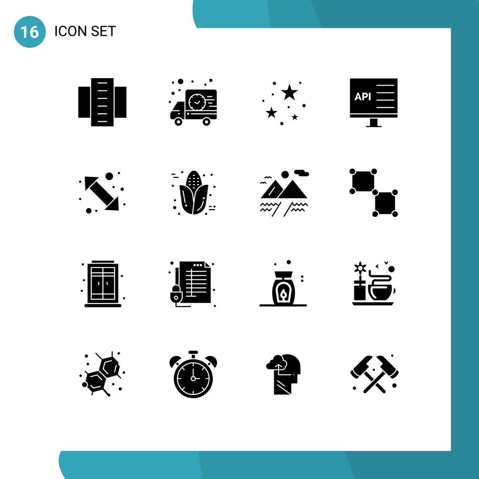 Mobile Interface Solid Glyph Set of 16 Pictograms of development computer truck coding stare Editable Vector Design Elements