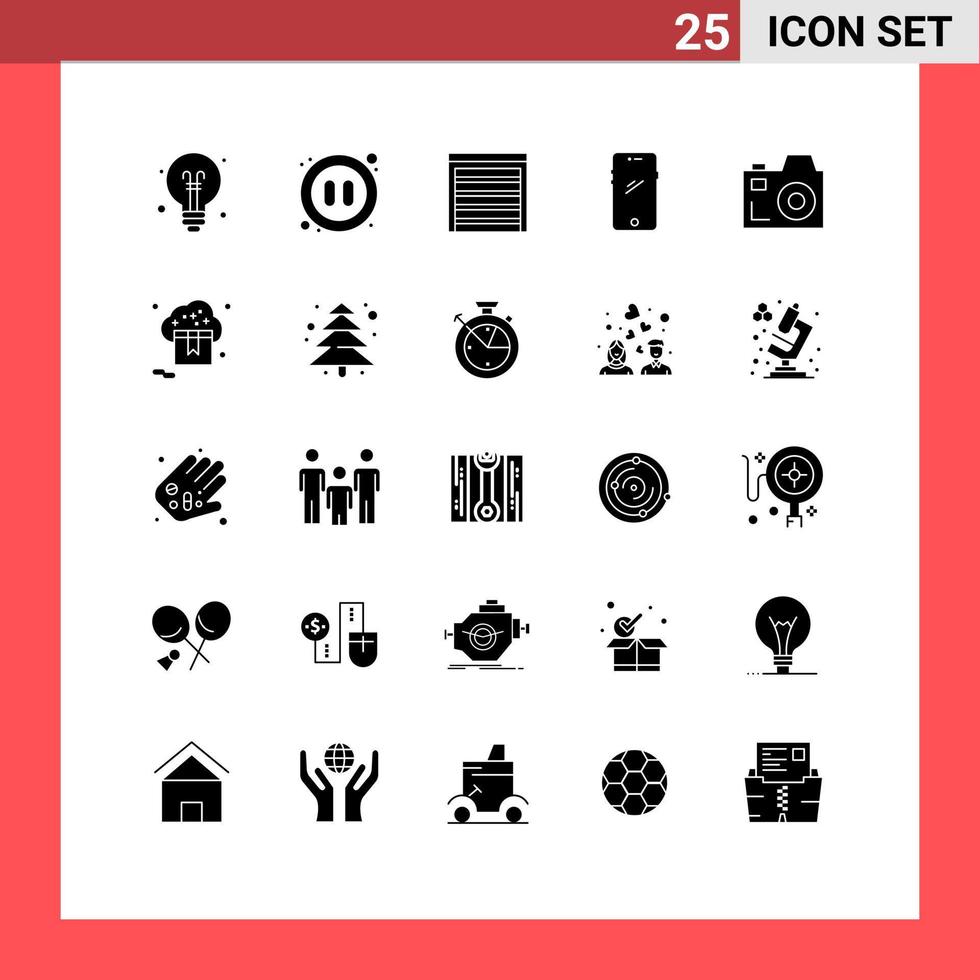 Set of 25 Modern UI Icons Symbols Signs for camera android door mobile phone Editable Vector Design Elements