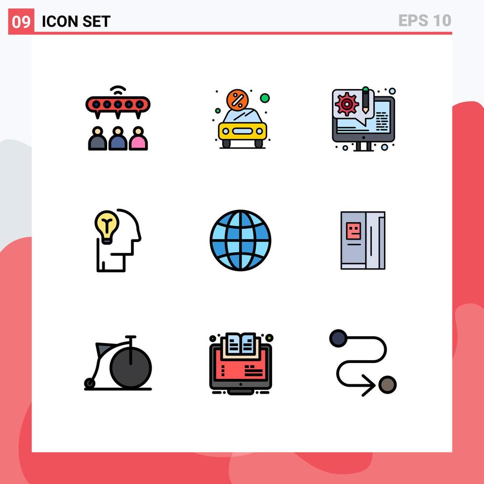 Set of 9 Modern UI Icons Symbols Signs for solution mind rent bulb web design Editable Vector Design Elements Free Vector