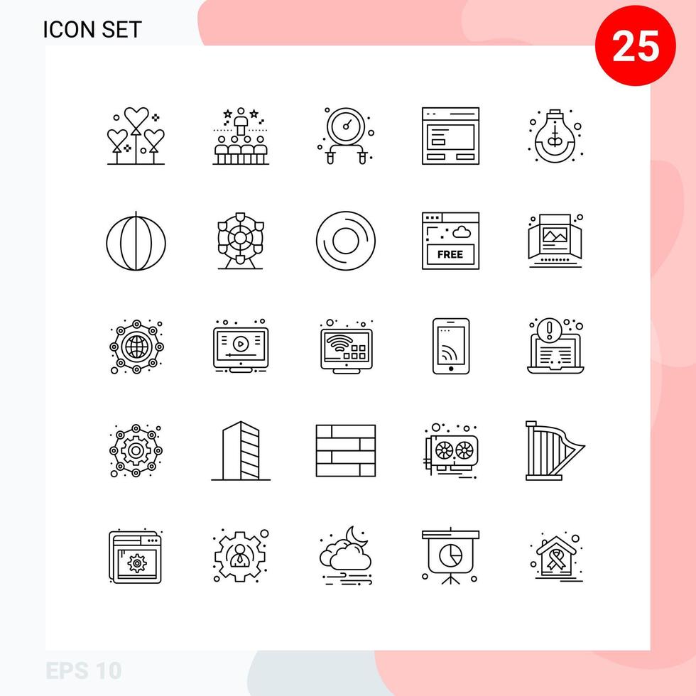 Mobile Interface Line Set of 25 Pictograms of education interface bright communication action Editable Vector Design Elements Free Vector