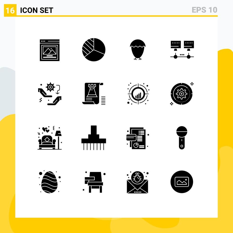 Pack of 16 creative Solid Glyphs of setting setup egg hand server Editable Vector Design Elements