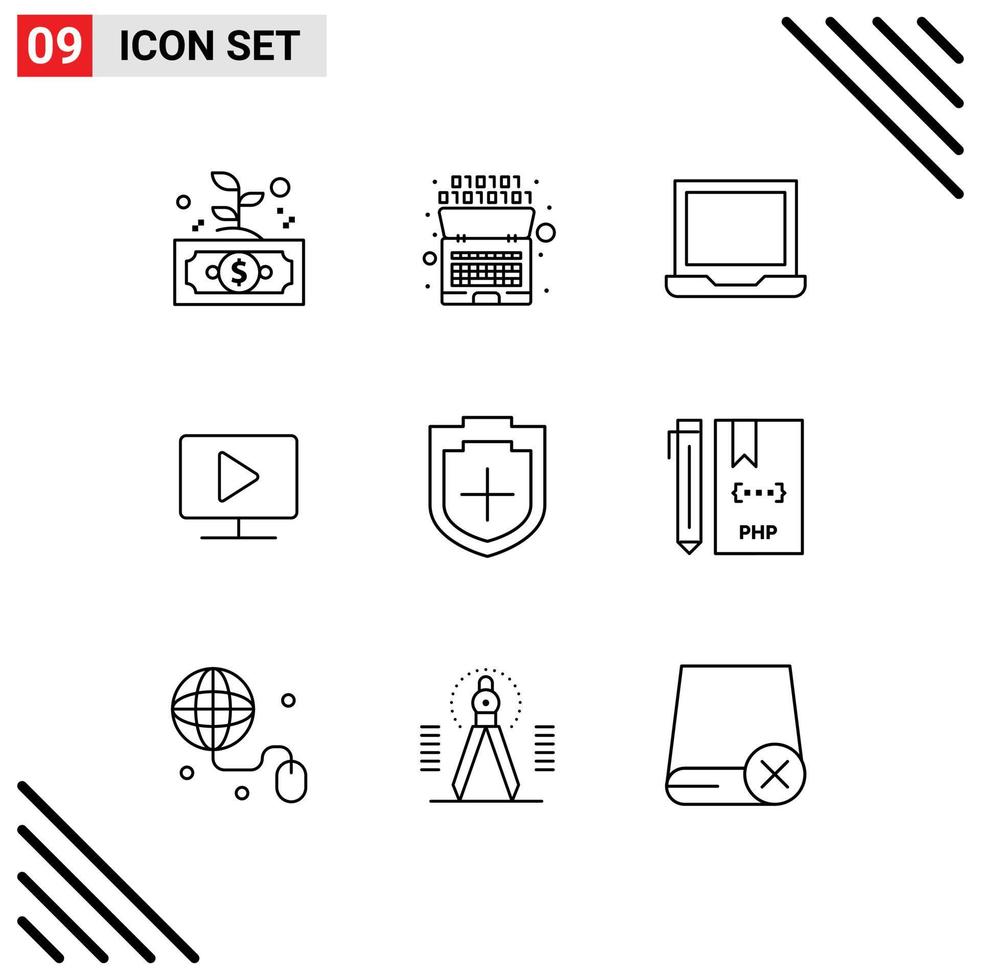9 Universal Outline Signs Symbols of play computer intelligence monitor preference Editable Vector Design Elements