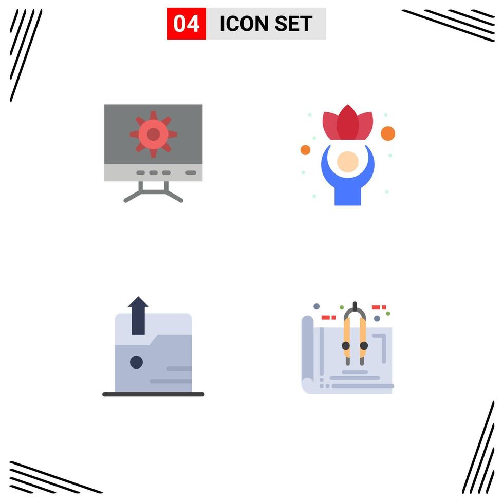 Editable Vector Line Pack of 4 Simple Flat Icons of computer upload exercise wellness blueprint Editable Vector Design Elements Free Vector