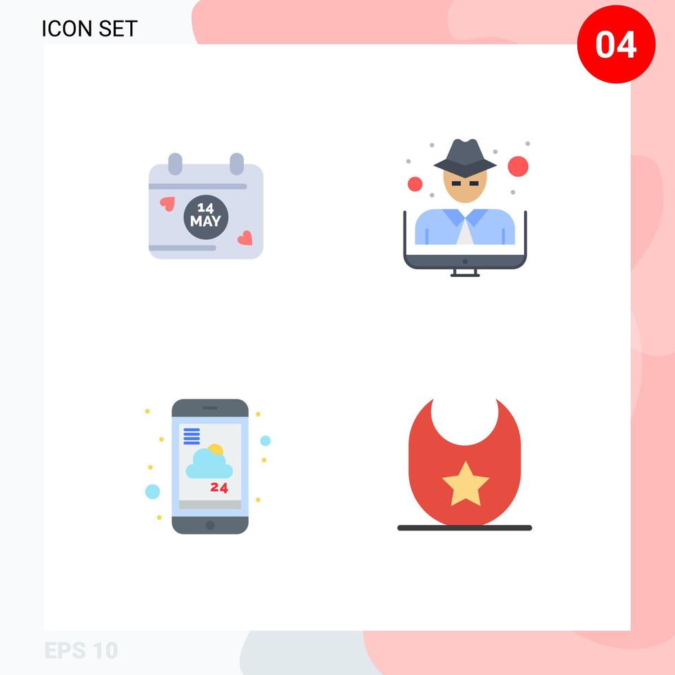 4 Thematic Vector Flat Icons and Editable Symbols of calendar report hacker crime weather Editable Vector Design Elements