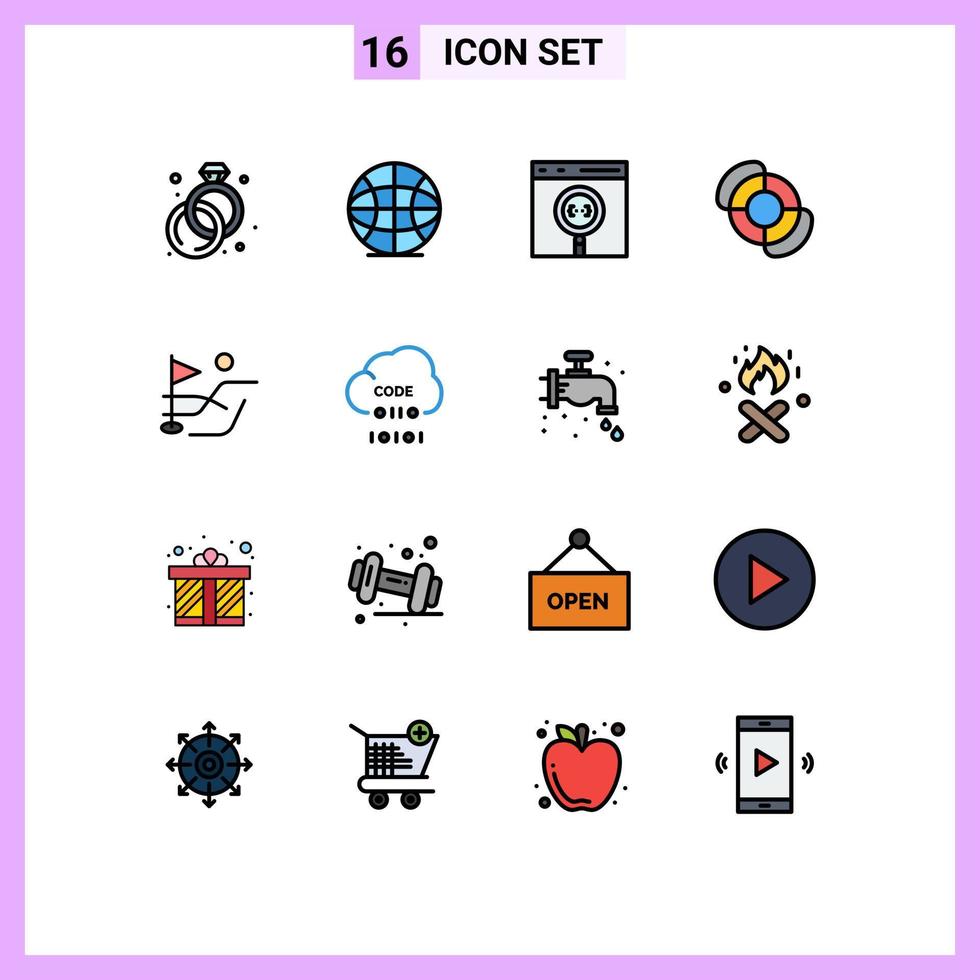 Set of 16 Modern UI Icons Symbols Signs for cloud field coding ball lifeguard Editable Creative Vector Design Elements