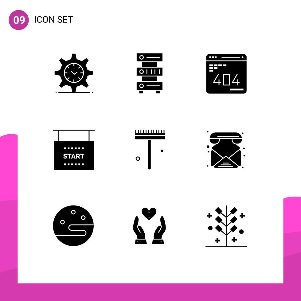 User Interface Pack of 9 Basic Solid Glyphs of start race storage flag web Editable Vector Design Elements Free Vector