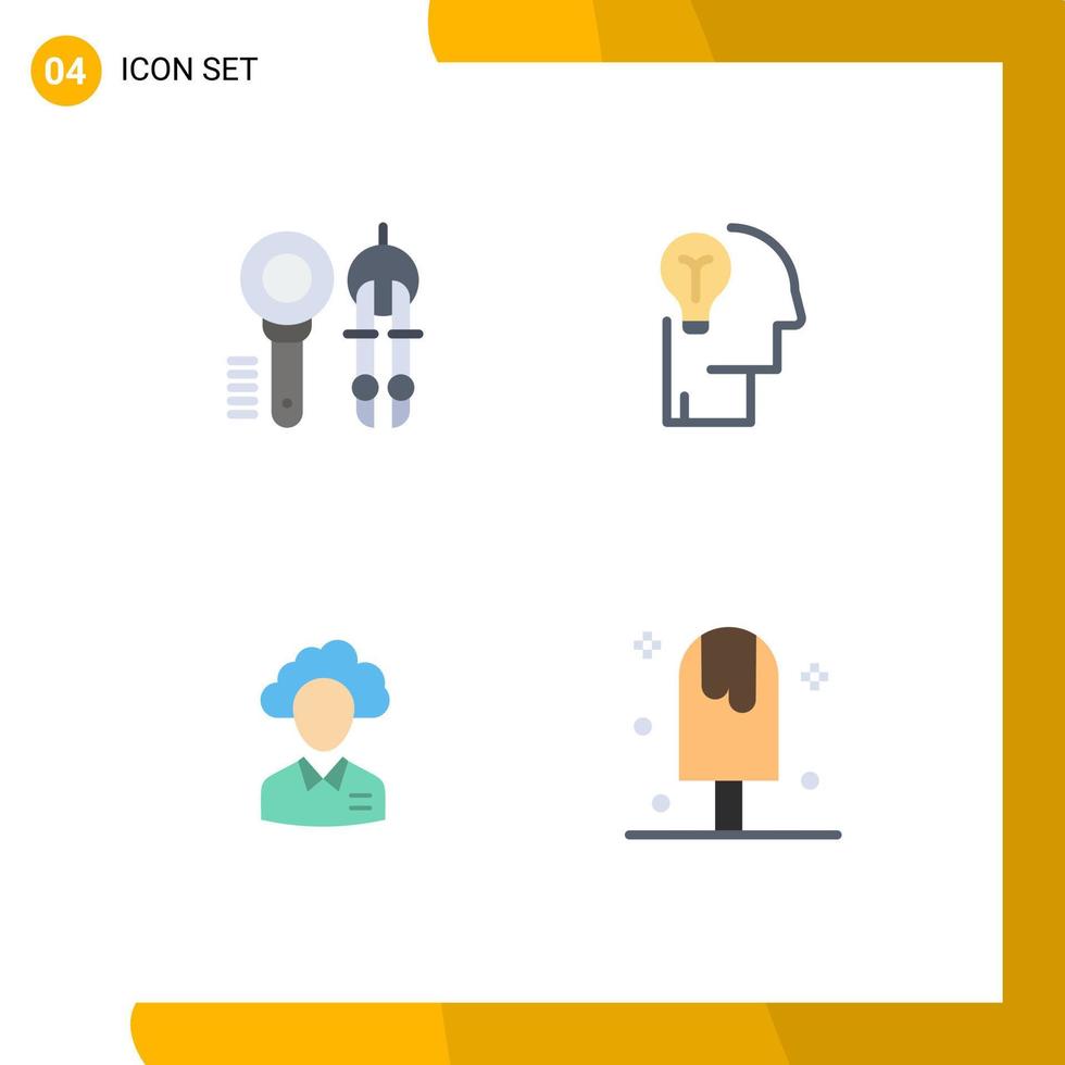 Set of 4 Vector Flat Icons on Grid for search solution tool bulb cloud Editable Vector Design Elements Free Vector