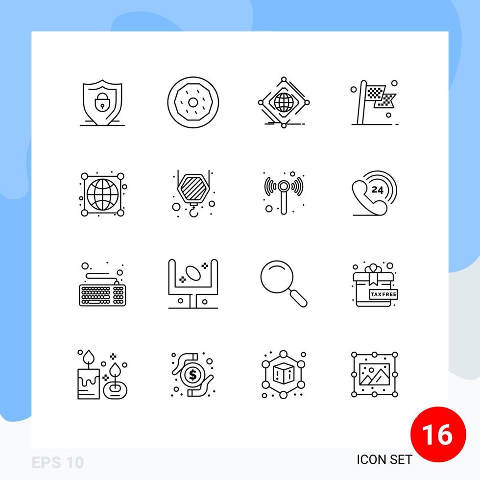 16 User Interface Outline Pack of modern Signs and Symbols of flag destination complex checkered web Editable Vector Design Elements Free Vector