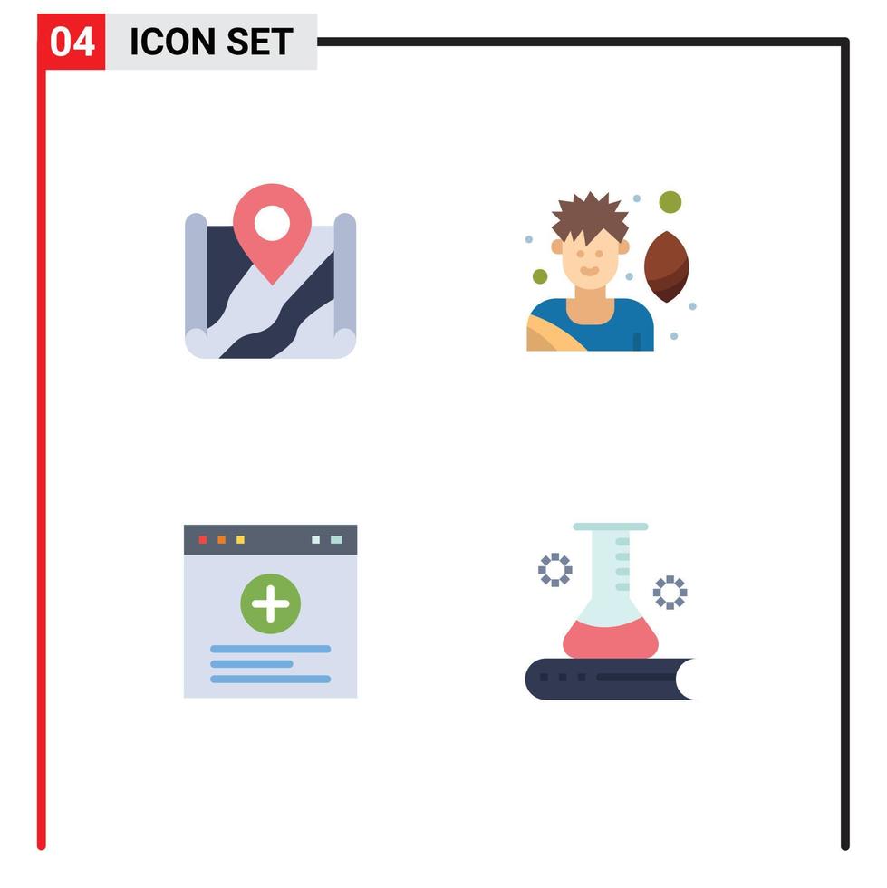 Set of 4 Modern UI Icons Symbols Signs for map internet google soccer player science and education Editable Vector Design Elements